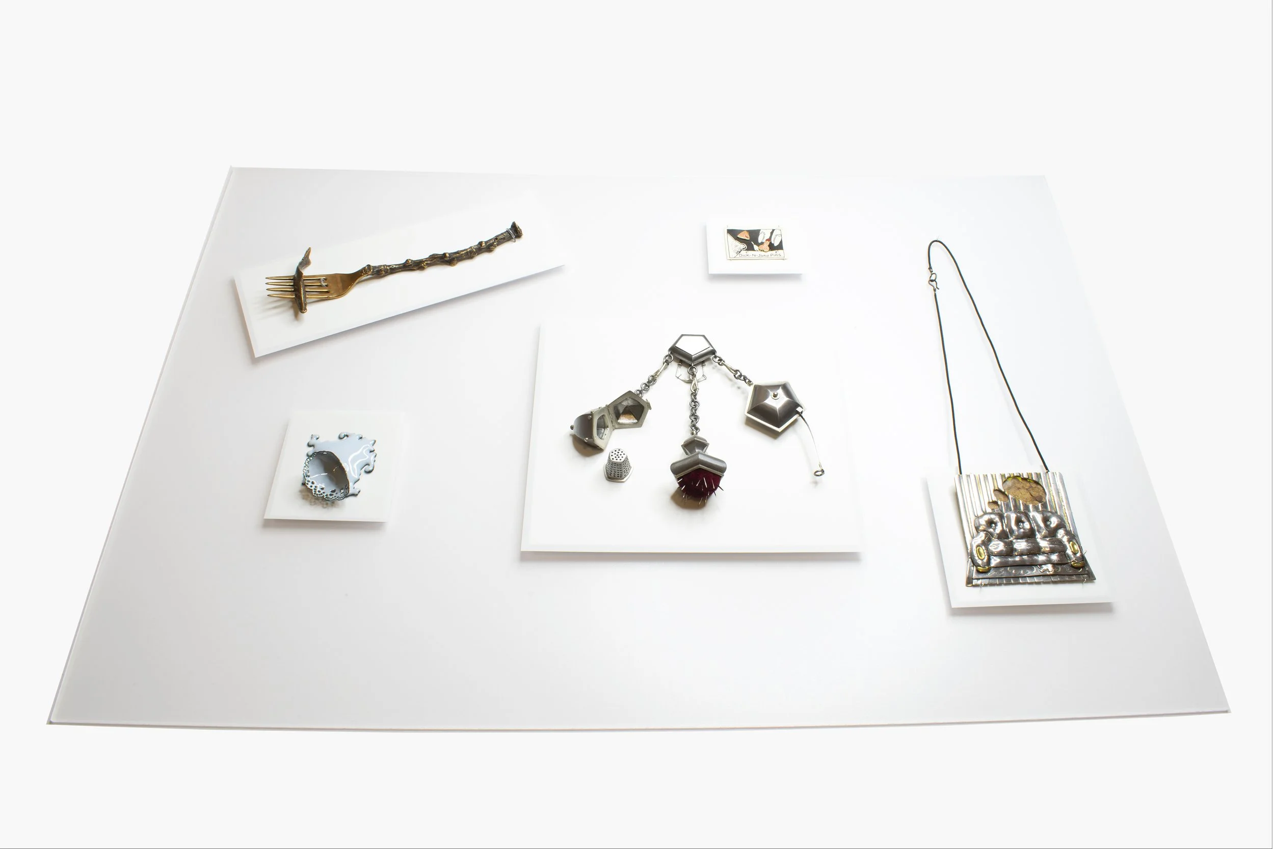 These pieces playfully question the role that mark-making can occupy in works of art that are related to the body and material hierarchies in the field of jewelry.