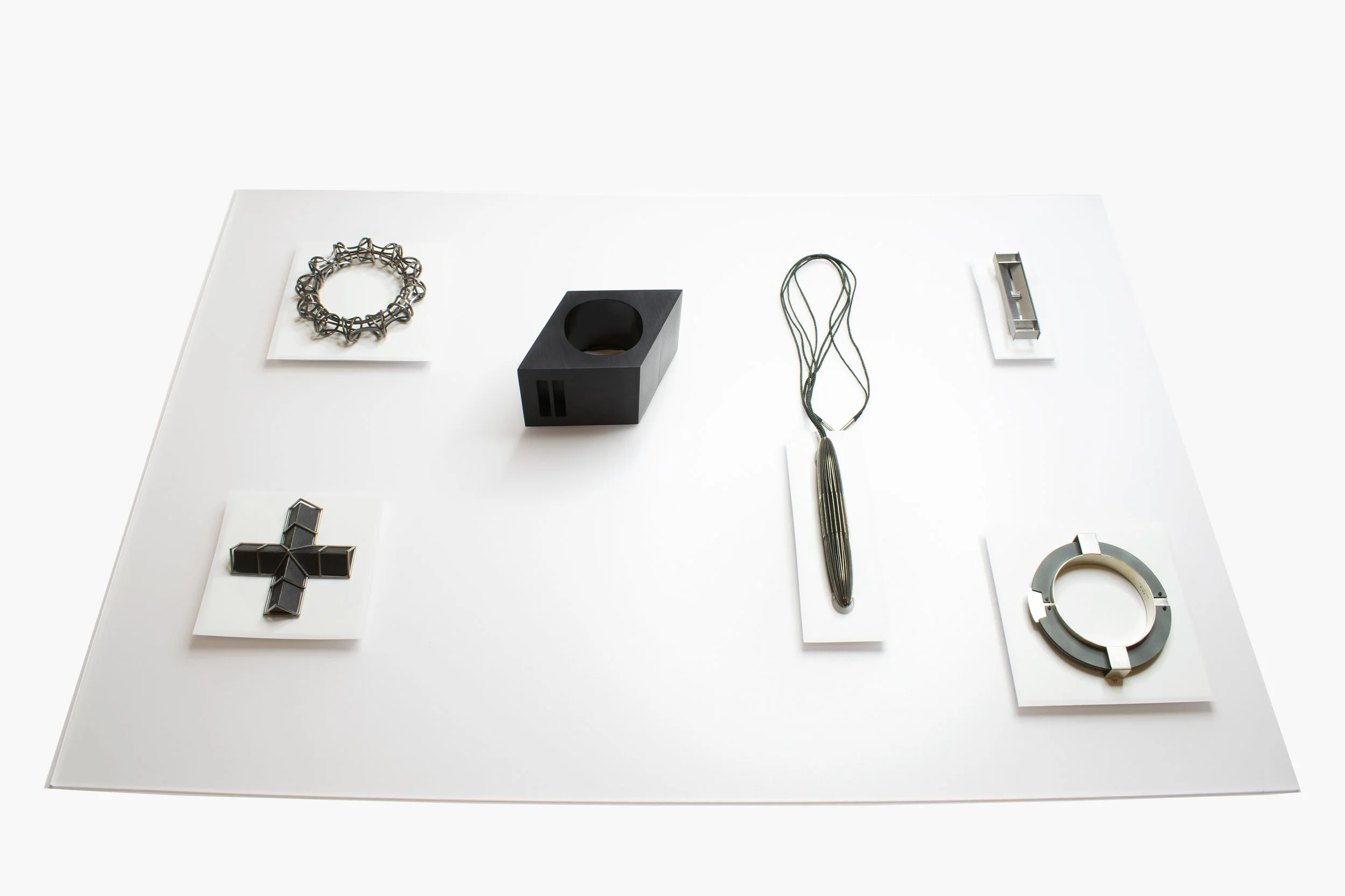 Fascinated by modern industry and architecture, some jewelers at the beginning of the 20th century dismissed conventional ideas about beauty and instead explored the aesthetic virtues of precision, proportion, and carefully considered form. By adopting nontraditional materials such as steel, aluminum, graphite, and plastic as legitimate media, they placed a focus on the expressive qualities of structure and volume.